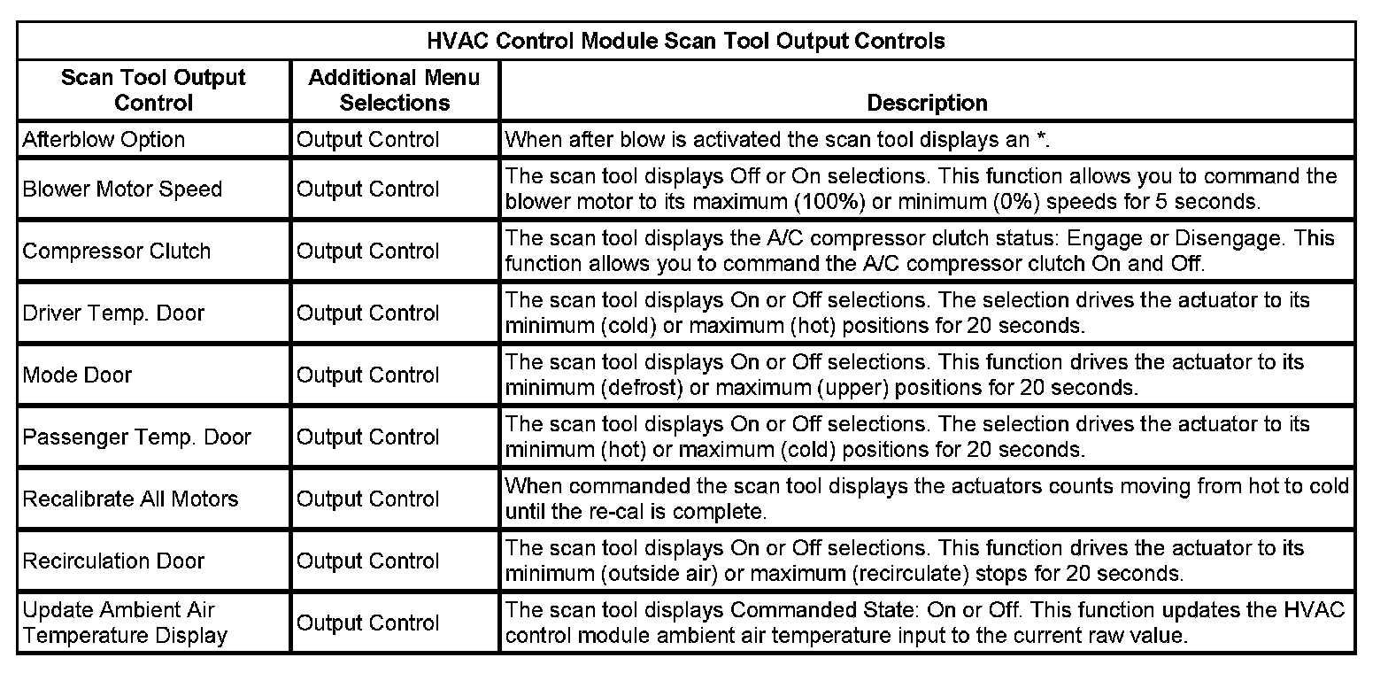 HVAC Control Module Scan Tool Output Controls: