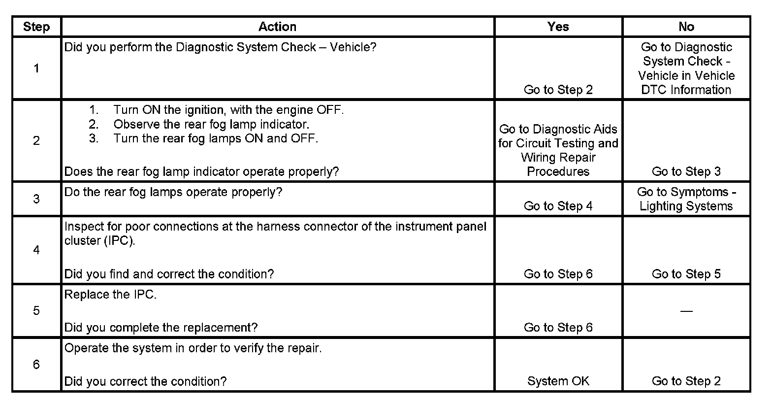 Fog Lamp Indicator Inoperative - Rear
