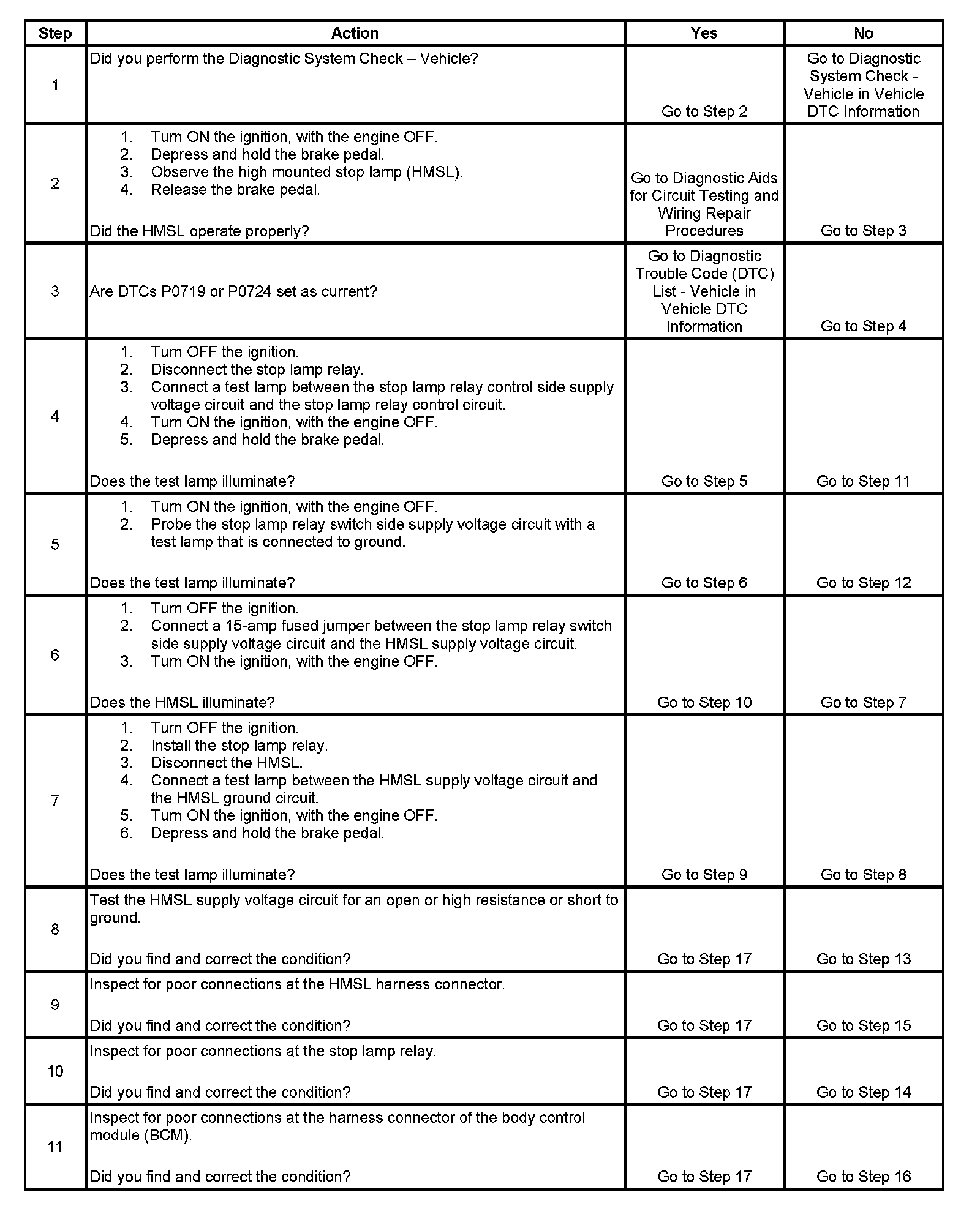 IMPORTANT: The stop lamps will not illuminate unless the ignition is in the ON position. For more detailed information concerning stop lamp operation, refer to Exterior Lighting Systems Description and Operation .