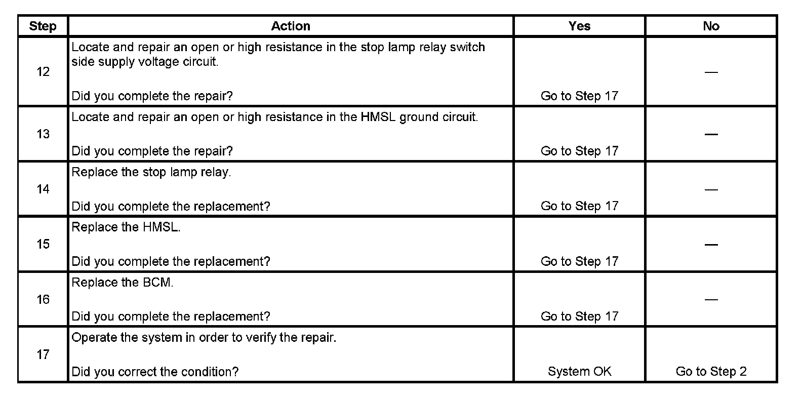 HIGH MOUNTED STOP LAMP INOPERATIVE