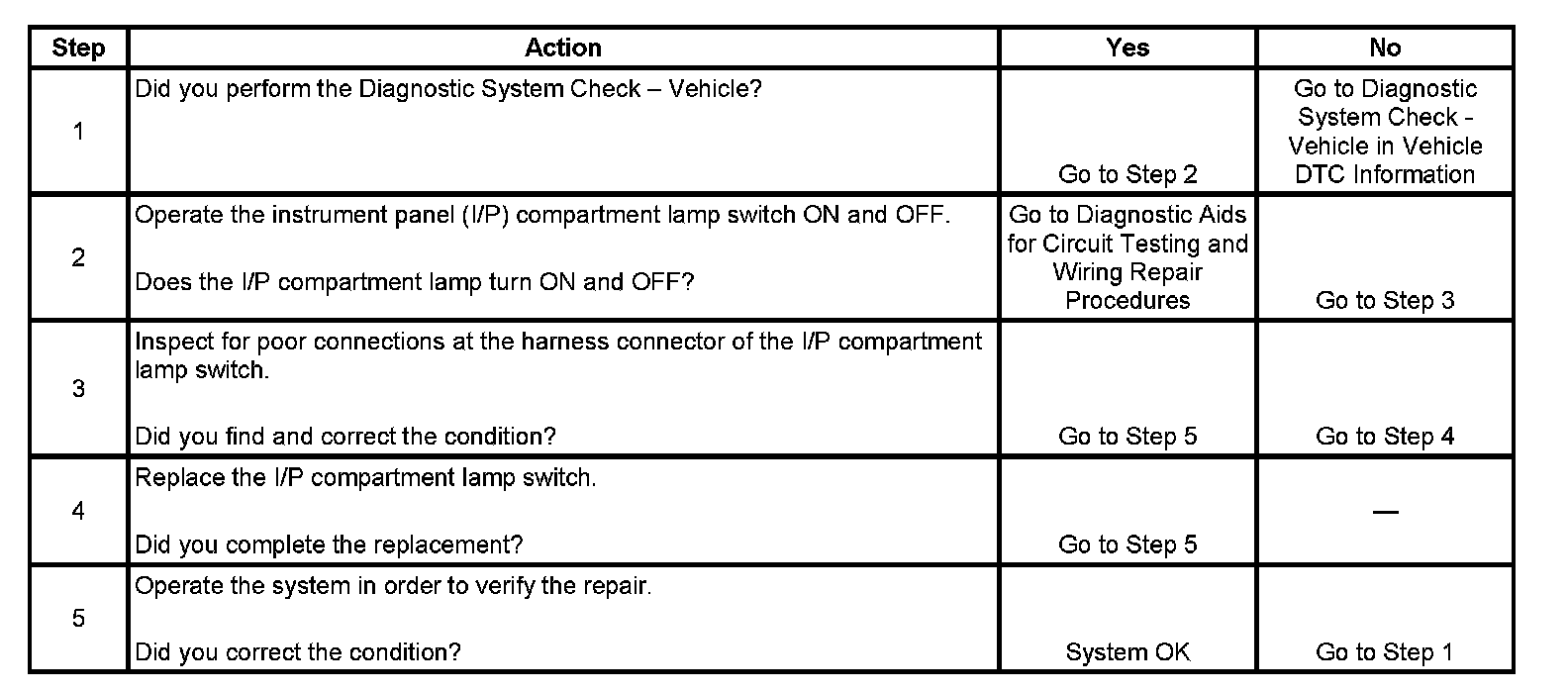 Instrument Panel (I/P) Compartment Lamp Always On