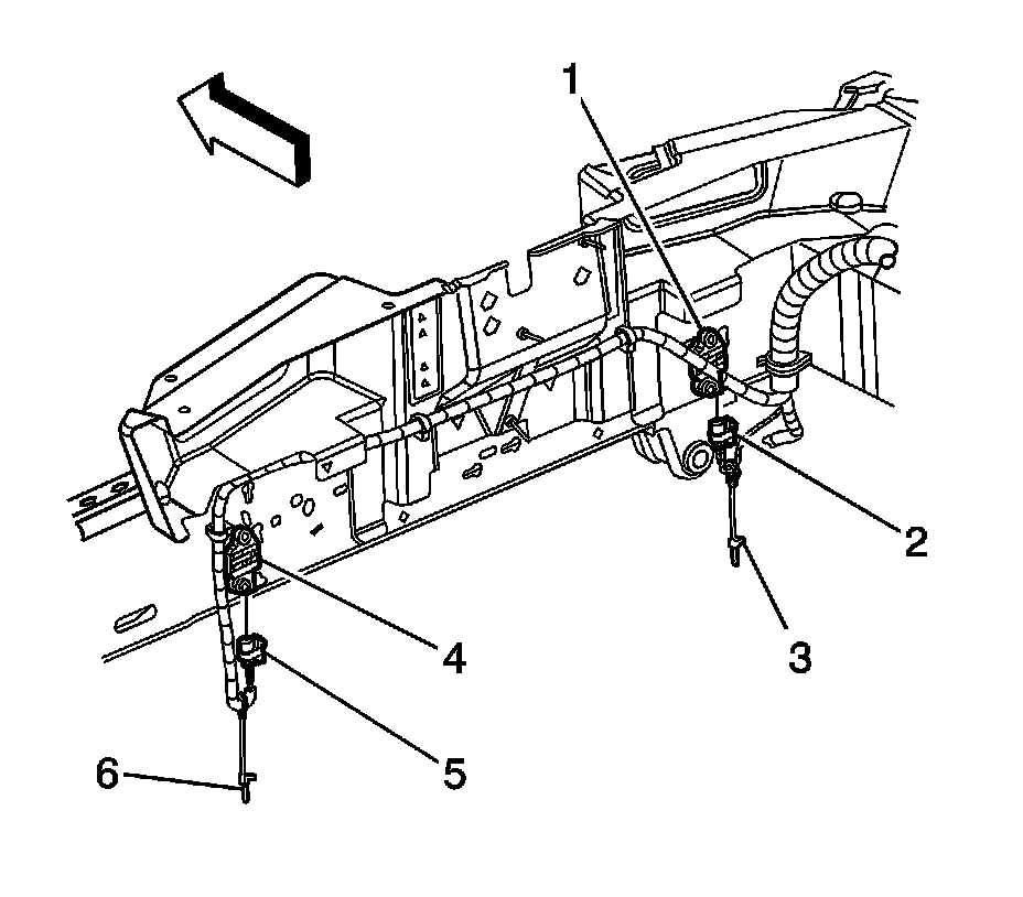 8. Locate both the right and left front end sensors, also known as the electronic frontal sensor (EFS) (1, 4).