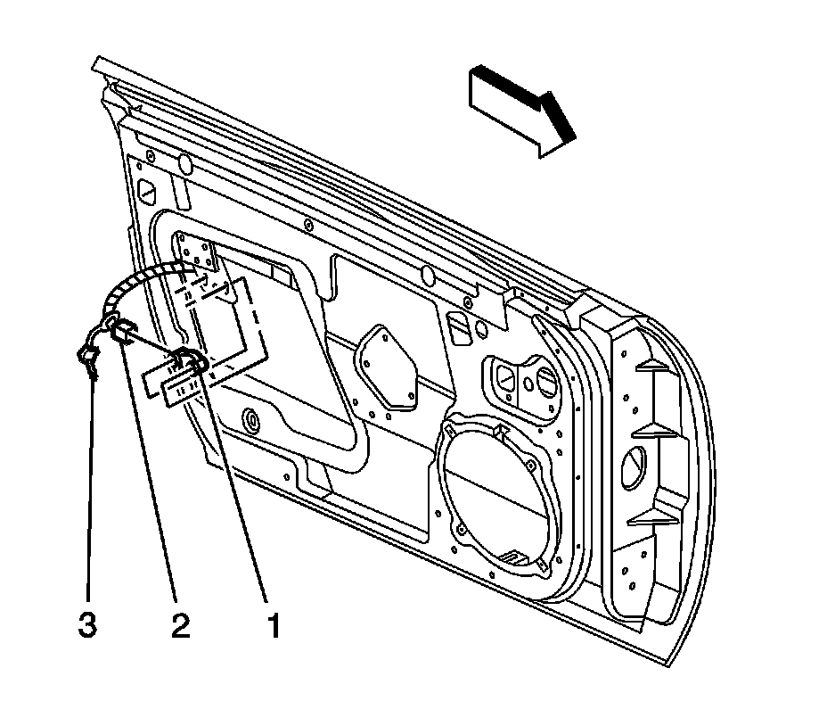 7. Open left/driver door and remove the door trim panel. Refer to Trim Panel Replacement - Driver Door in Doors.