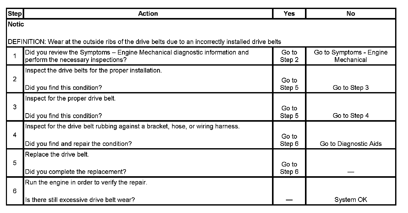 4. This inspection is to verify the drive belts is not contacting any parts of the engine or body while the engine is operating. There should be sufficient clearance when the drive belt accessory drive components load varies. The drive belts should not come in contact with an engine or a body component when snapping the throttle.