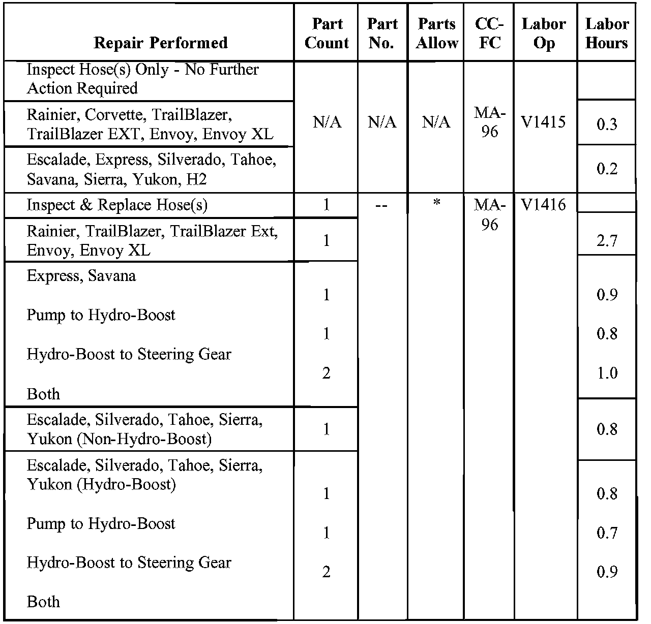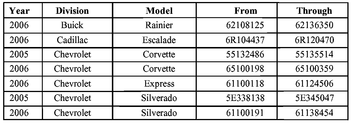 Involved are certain 2005 Chevrolet Corvette, Silverado; GMC Sierra; and 2006 Buick Rainier; Cadillac Escalade, Chevrolet Corvette, Express, Silverado, Tahoe, TrailBlazer, TrailBlazer EXT; GMC Envoy, Envoy XL, Savana, Sierra, Yukon; and HUMMER H2 vehicles built within the VIN breakpoints shown.
