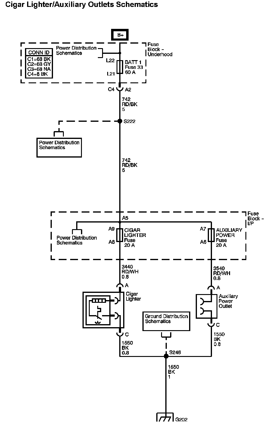 Cigar Lighter/Auxiliary Outlets Diagram: