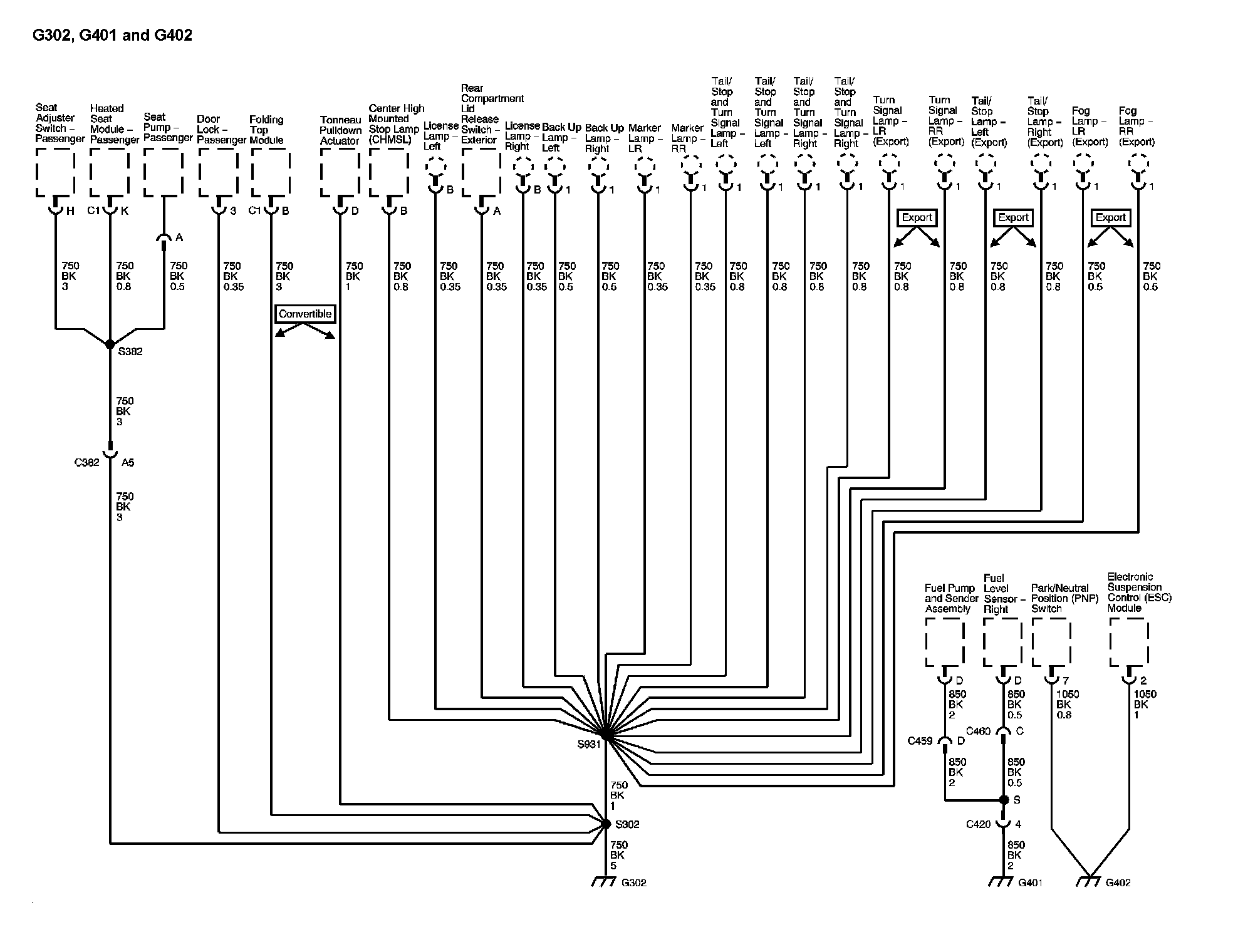 The locations for the Connectors, Grounds, Splices, and Grommets shown within these diagrams can be found via their numbers at Vehicle Locations.