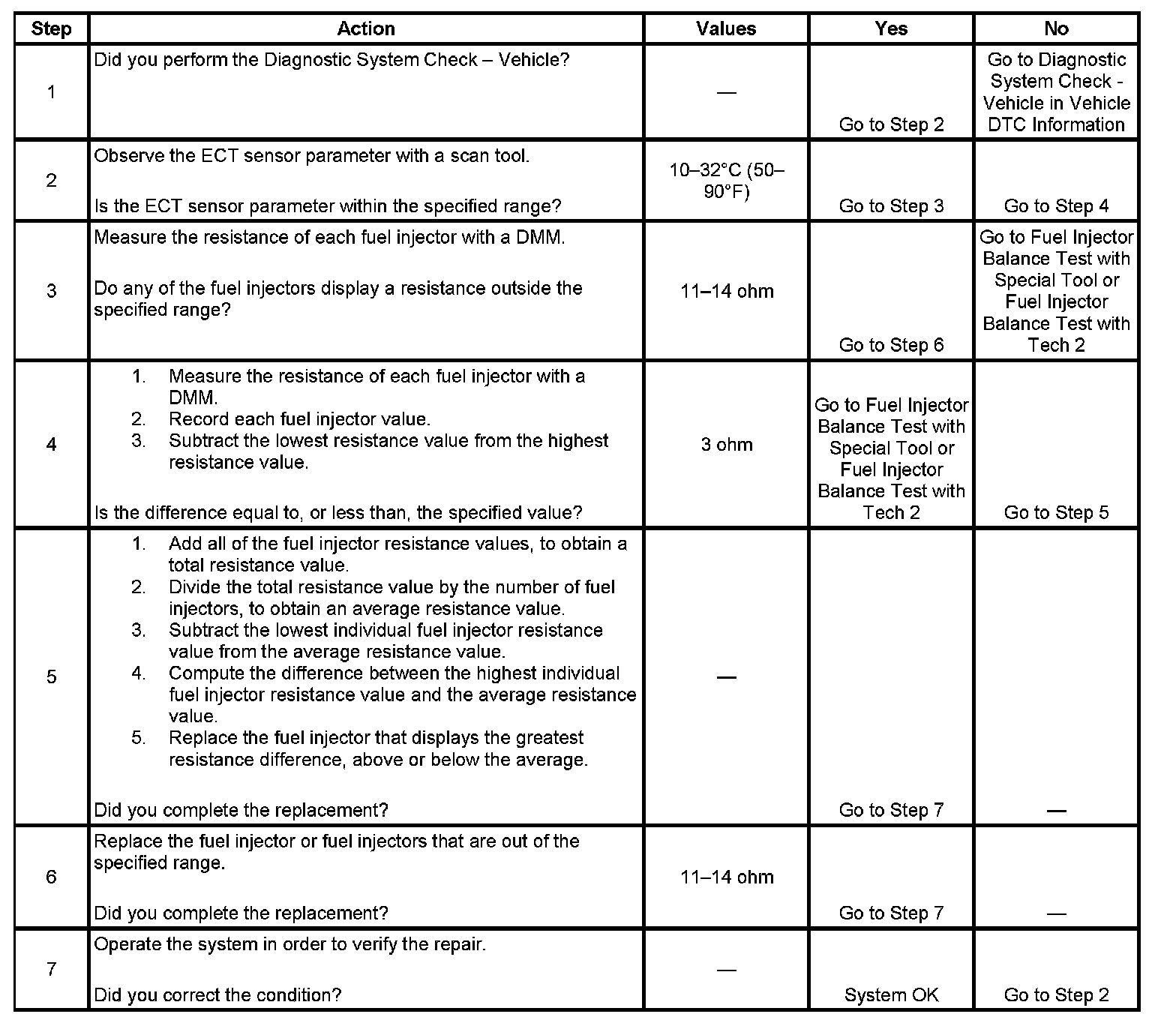 - Perform the fuel injector coil test within the conditions of the customers concern. A fuel injector condition may only be apparent at a certain temperature, or under certain conditions.