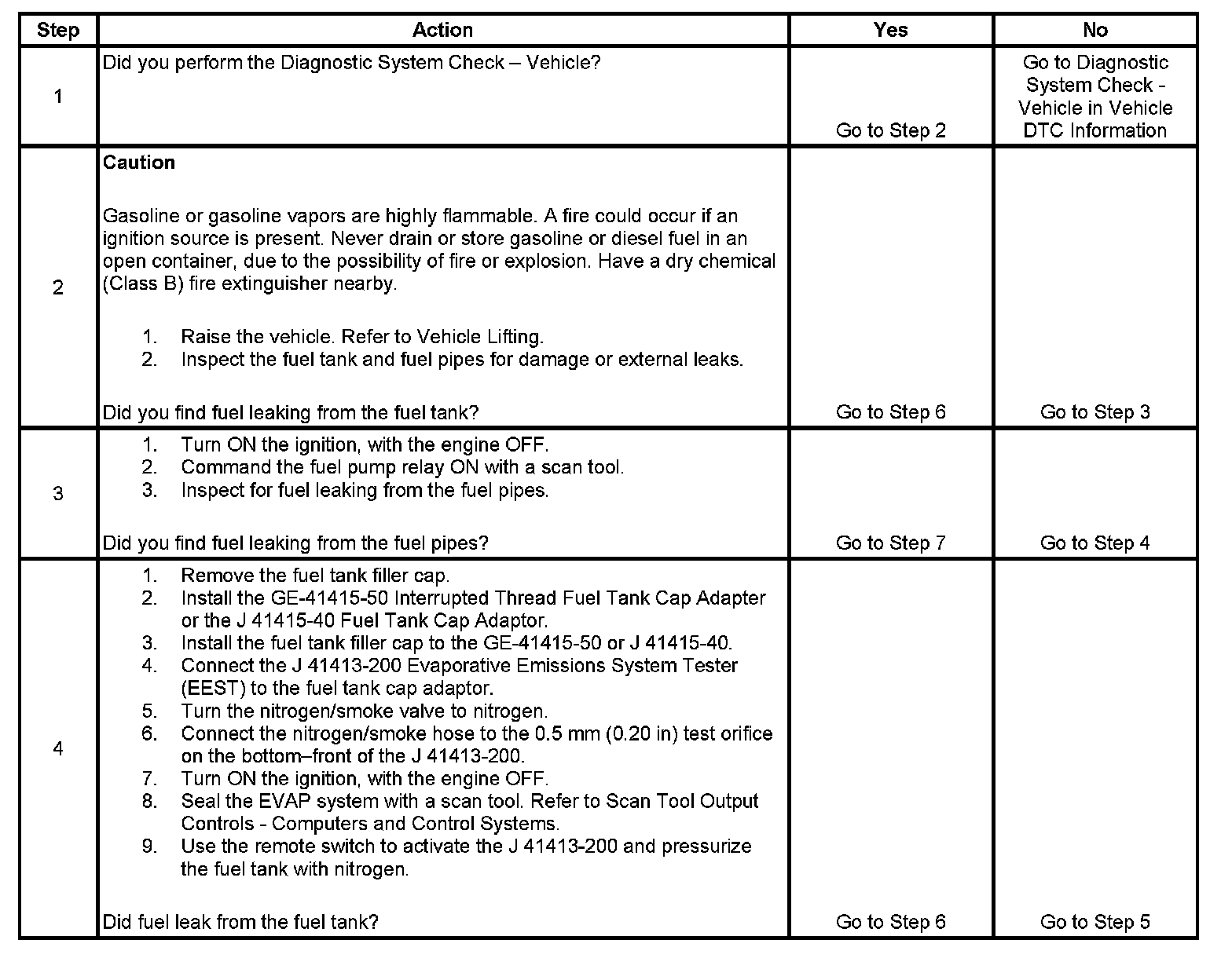 4. This step tests for fuel leaks below the fuel tank fuel level.
