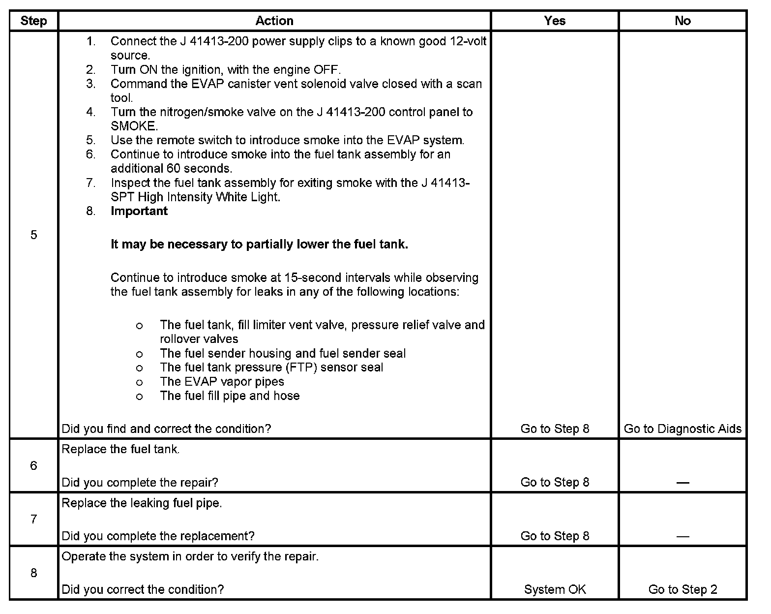 5. This step locates fuel vapors escaping above the fuel level in the fuel tank.