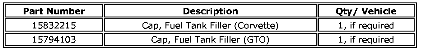 Some customers of 2005 model year Chevrolet Corvette and Pontiac GTO vehicles, equipped with a 6.0L V8 (RPO LS2 - VIN U) engine, may experience a condition where the fuel tank filler cap won't tighten properly, or the fuel tank filler cap won't come off, or is broken. These conditions may also cause the illumination of the Malfunction Indicator Light (MIL).