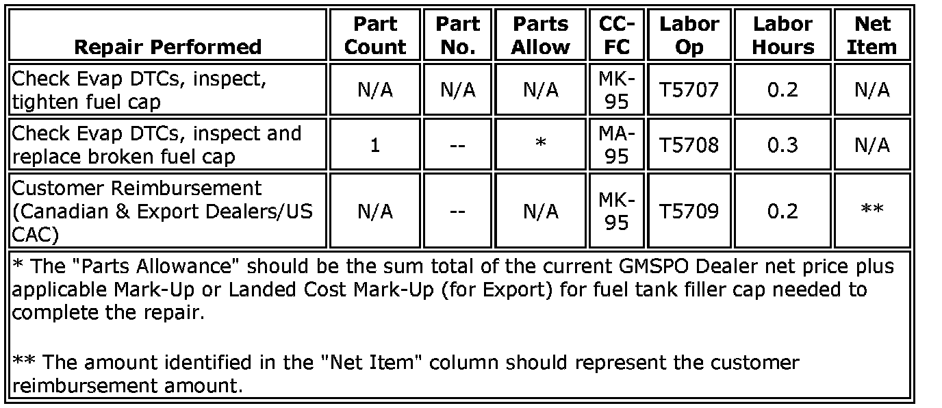 Dealers are to diagnose and, if necessary, replace the Fuel Tank Filler Cap. The repairs will be made at no charge to the customer.