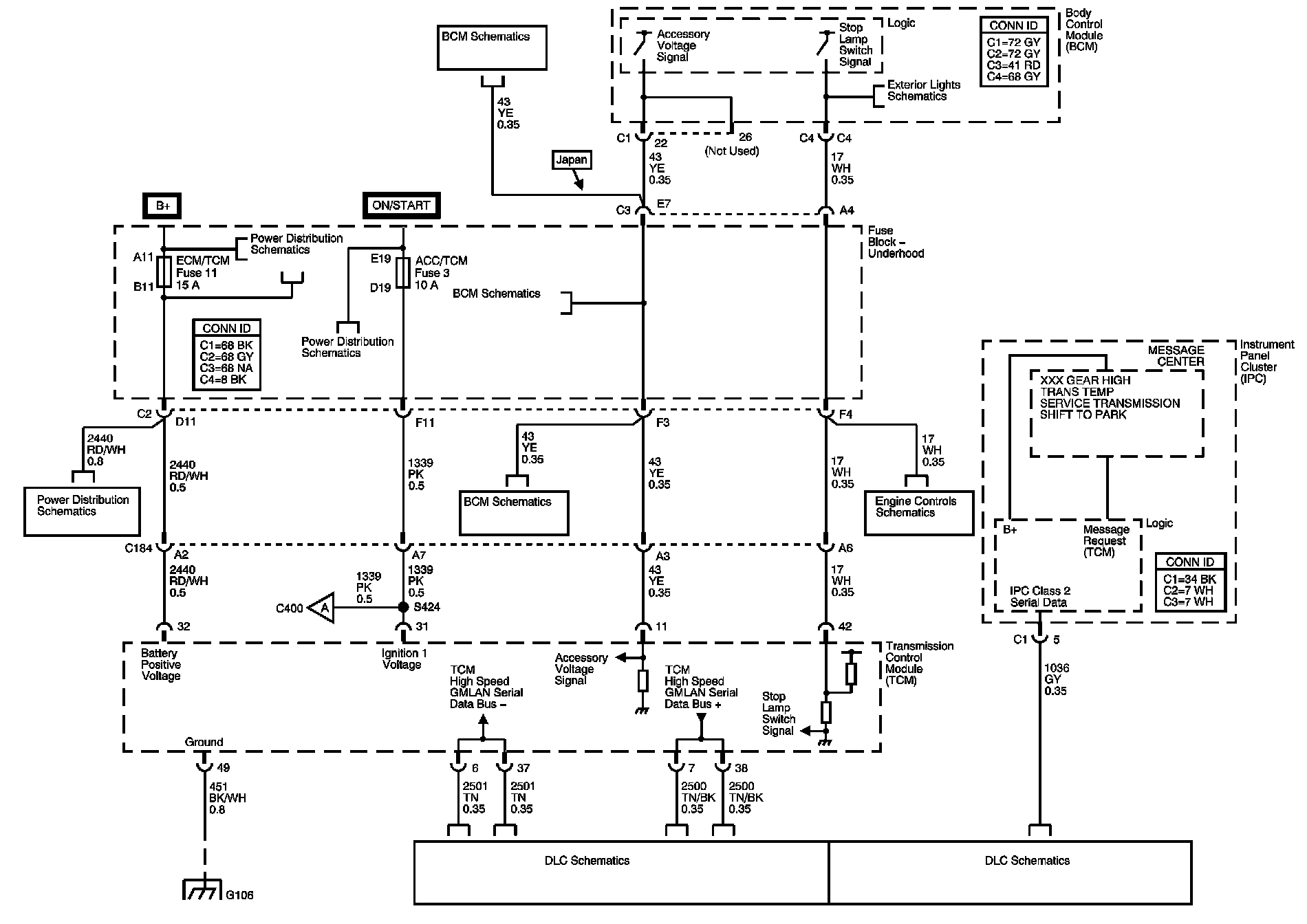 Locations: The locations for the Connectors, Grounds, Splices, and Grommets shown within these diagrams can be found via their numbers at Vehicle Locations. Locations