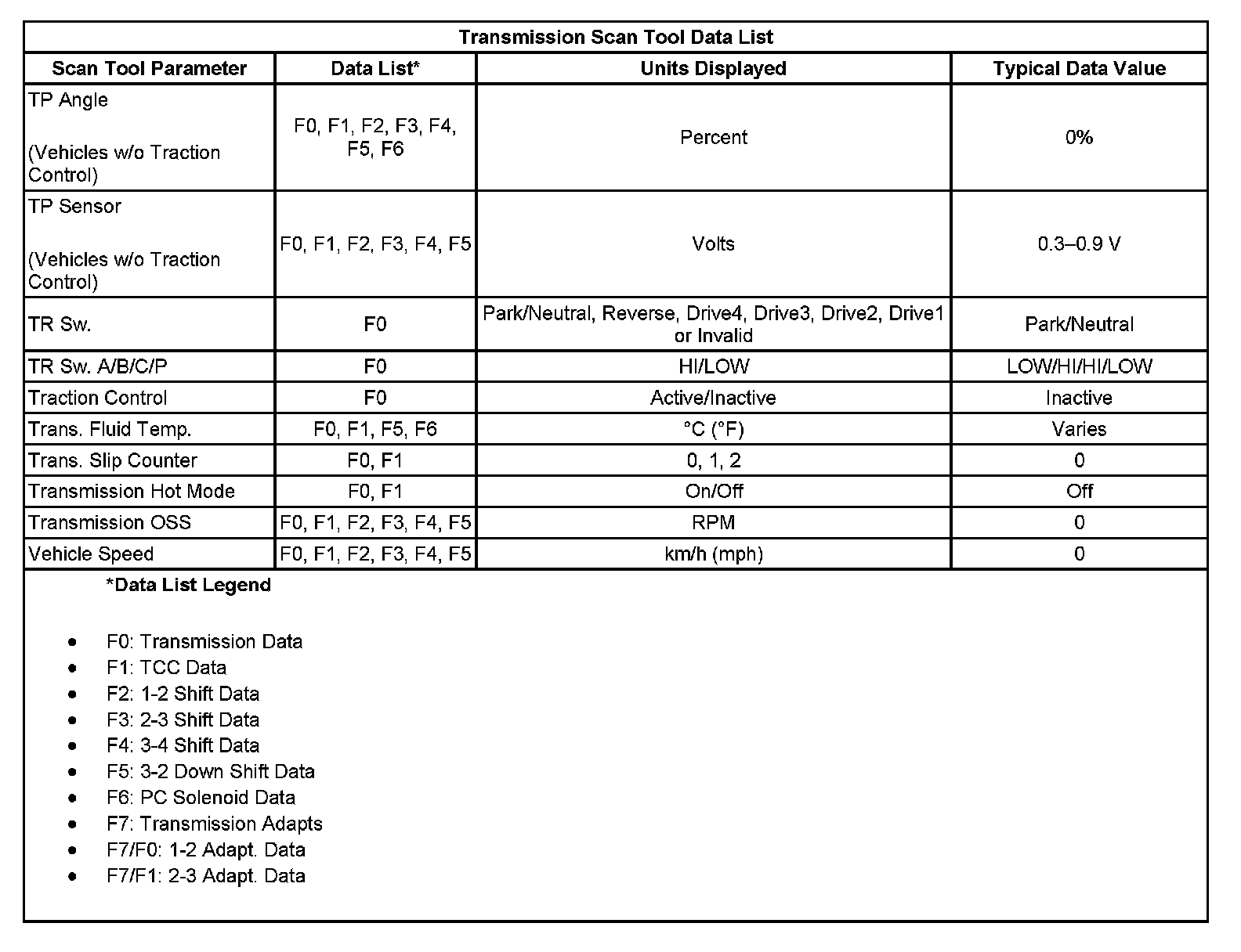 Transmission Scan Tool Data List