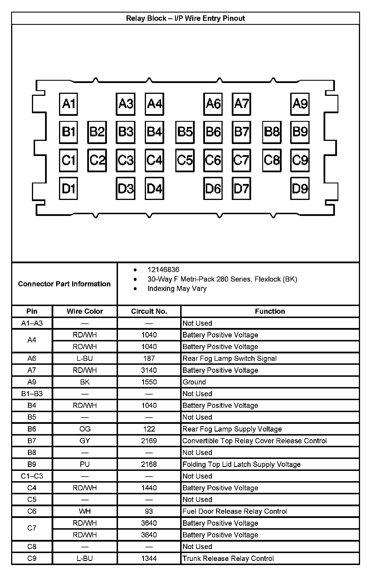 Relay Block - I/P Wire Entry Pinout Part 1: