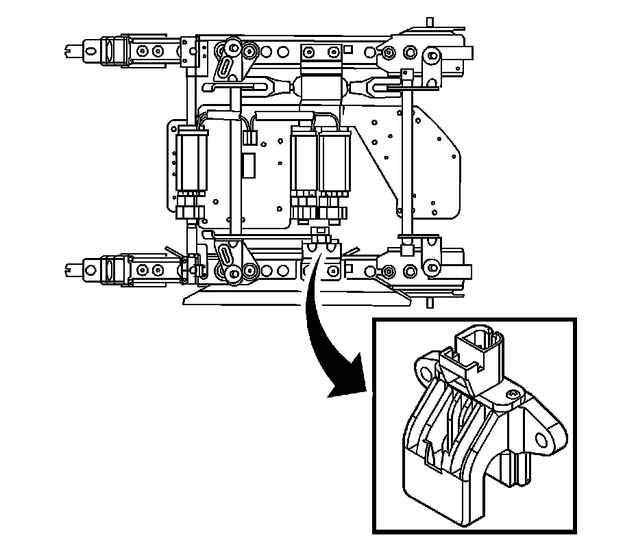 2. Install the rivets that retain the position sensor (1) to the seat adjuster track bracket.