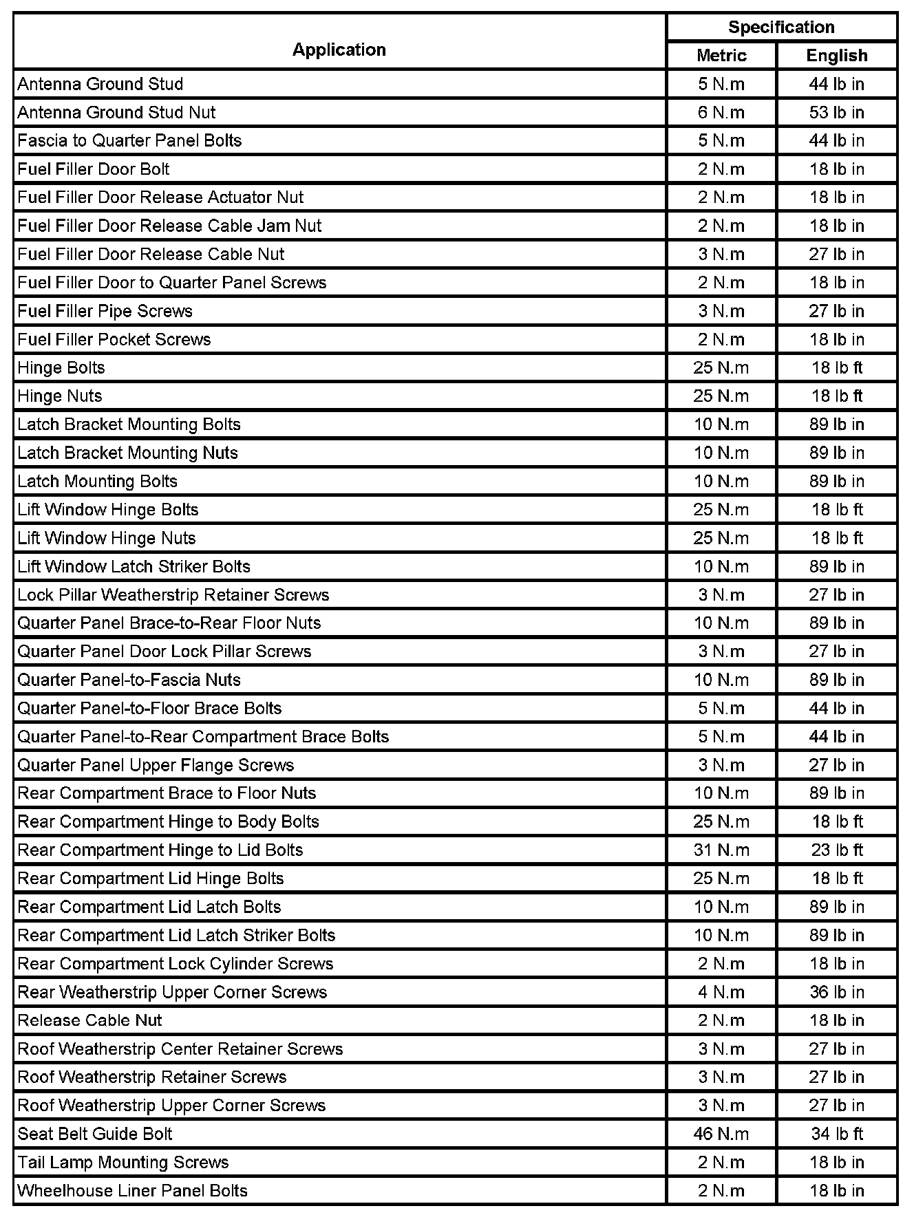Fastener Tightening Specifications