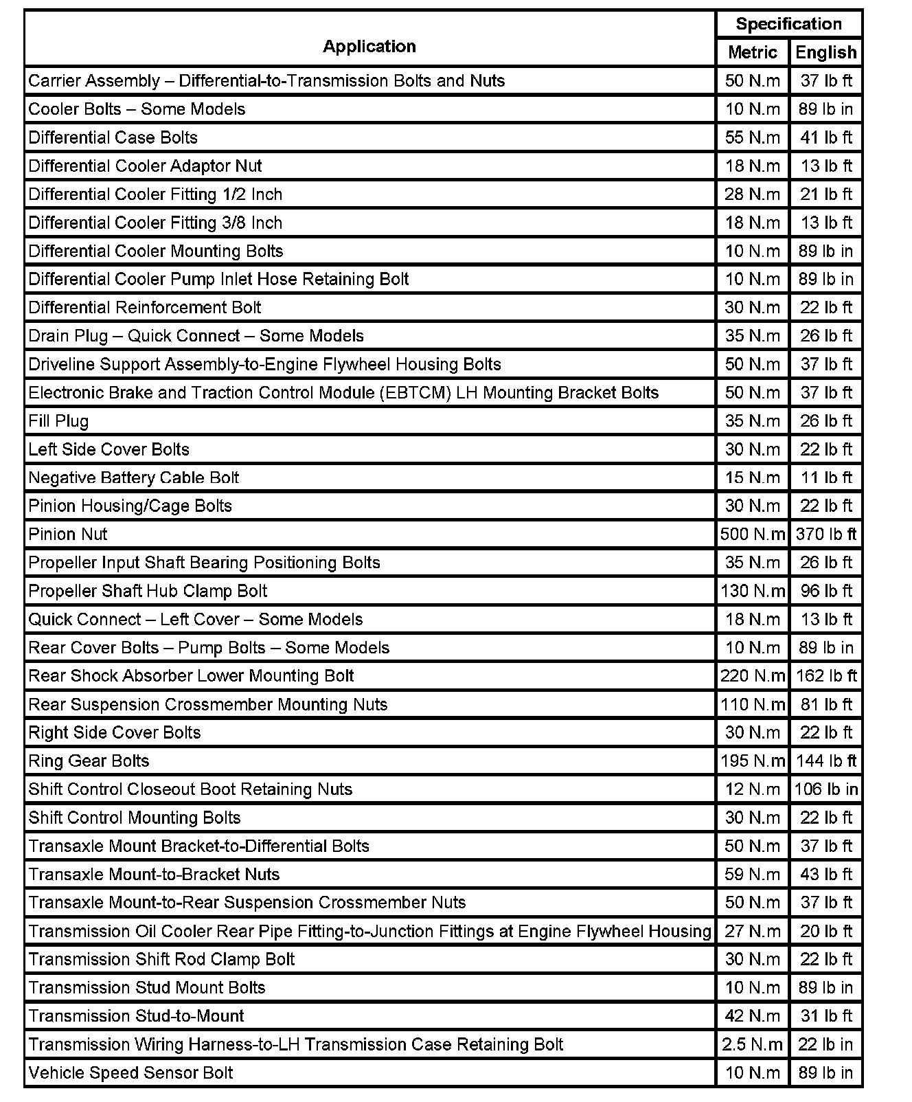 Fastener Tightening Specifications: