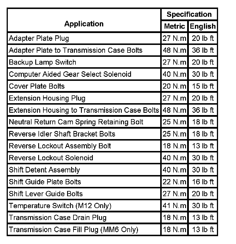 Fastener Tightening Specifications: