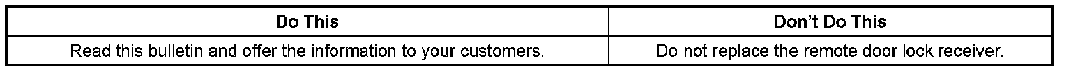 A copy of this bulletin may be given to your customer to assist you in explaining the proper operation features and possible symptoms of external radio frequency interference on the Keyless Access System.