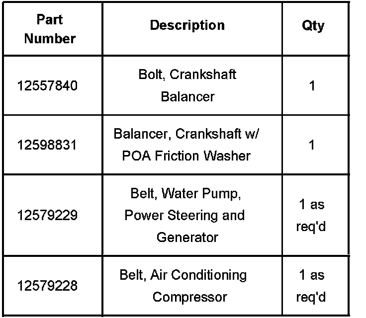Check Gages Light, Battery Voltage Low, Accessory Drive Belt Slipping or Missing (Install New Crankshaft Balancer with POA Friction Washer)