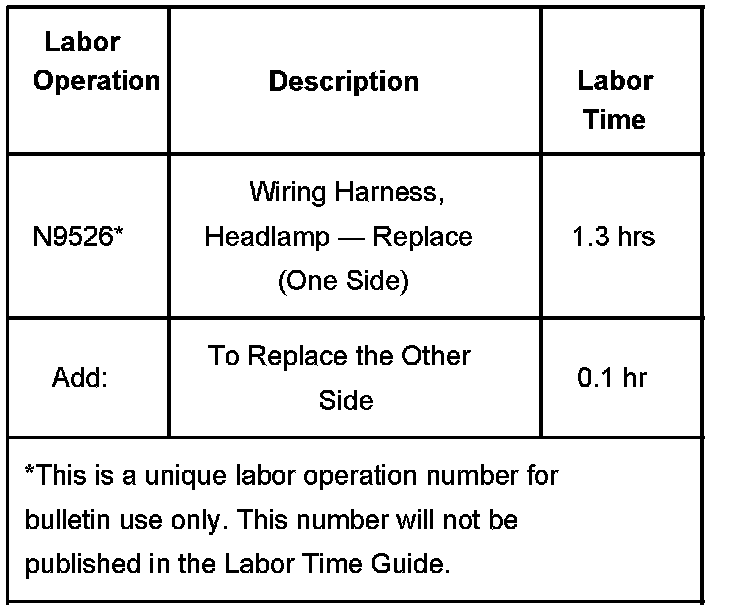 Some early versions of the headlamp wiring harness have a section of harness that is not needed for this bulletin. Prior to installing harness to headlamp, disconnect and discard this section.