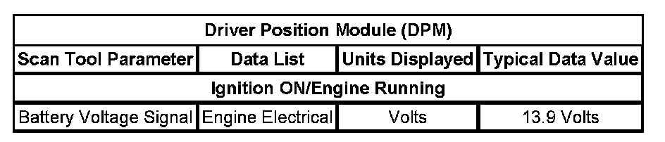 Normal Scan Tool Data Values - Driver Position Module (DPM)