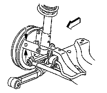 The D height dimension measurement determines the proper rear end ride height. There is no adjustment procedure. Repair may require replacement of suspension components.