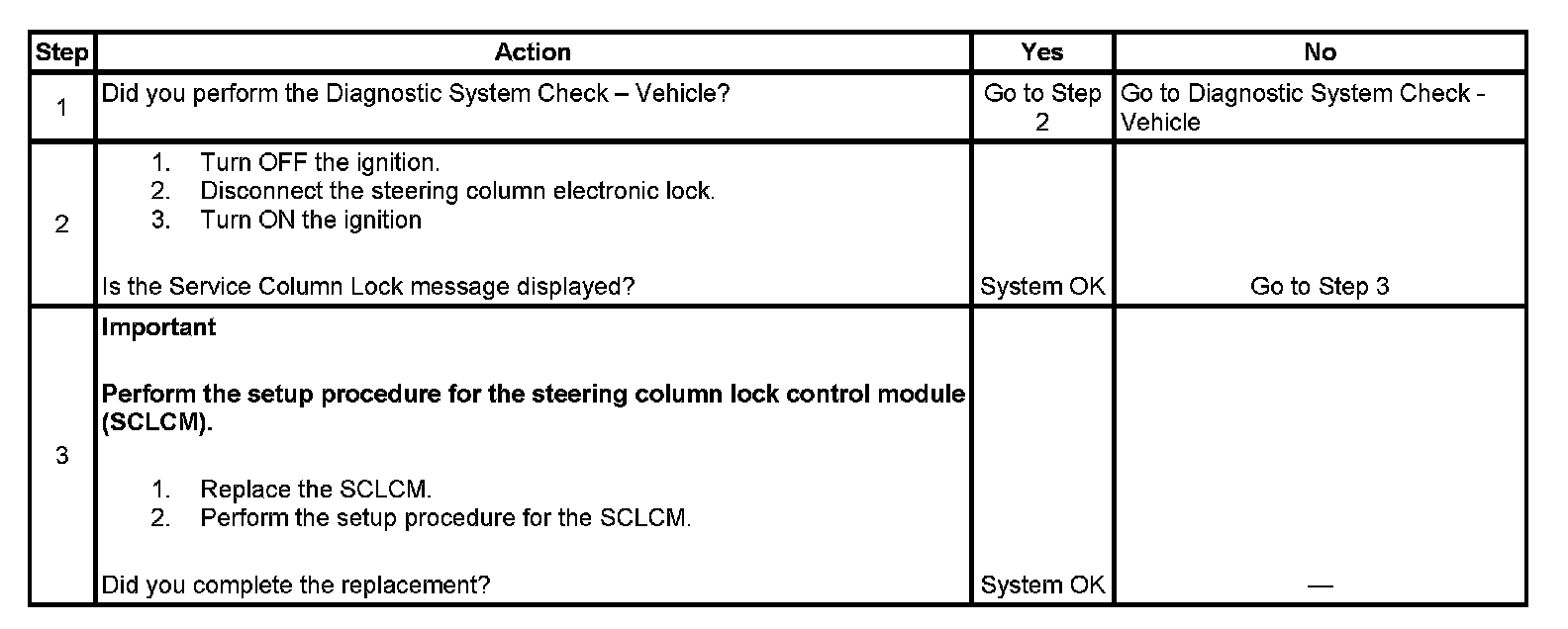 Service Column Lock Indicator Inoperative