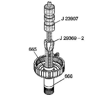 3. Using J 29369-2 with J 23907, remove the reaction carrier shaft front bushing (665).