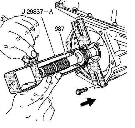 Important: If the J 29837-A is not used, the output shaft (687) may fall free when the input carrier retaining ring is removed.