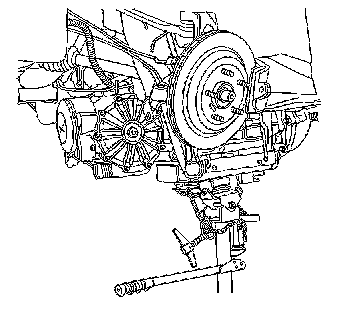 Notice: When tilting down the rear of the driveline, observe the clearance between the rear of the engine and the composite dash panel. Do not allow the engine to rest unsupported against the composite dash panel, or vehicle damage may result.