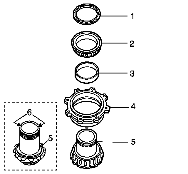 ^ The pinion housing/cage (4) for damaged bolt holes, broken flanges, restrictions within the oil passages, worn or loose bearing races and/or race bores