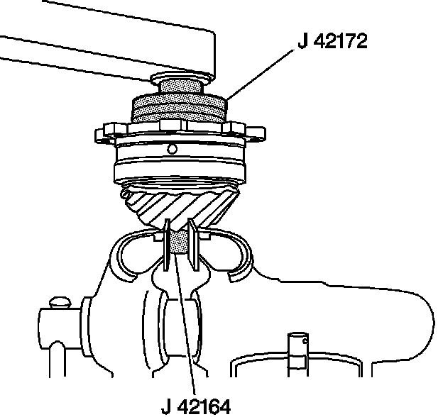 Install the nut onto the pinion shaft using a torque wrench, J 42172, and J 42164.