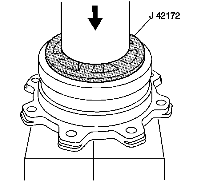 Install the inner bearing cup into the pinion housing/cage using the J 42172 and a hydraulic press, if required.