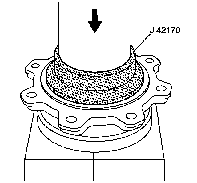 2. Install the outer bearing cup into the pinion housing/cage using the J 42170 and a hydraulic press, if required.
