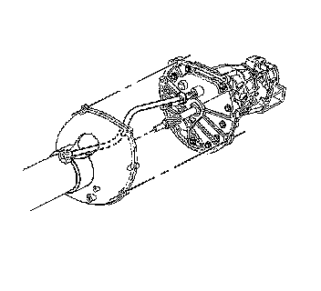Notice: When tilting down the rear of the driveline, insert a putty knife or similar tool between the shift control bracket on the driveline support assembly and the brake pipe retainer on the driveline tunnel wall to prevent damage.