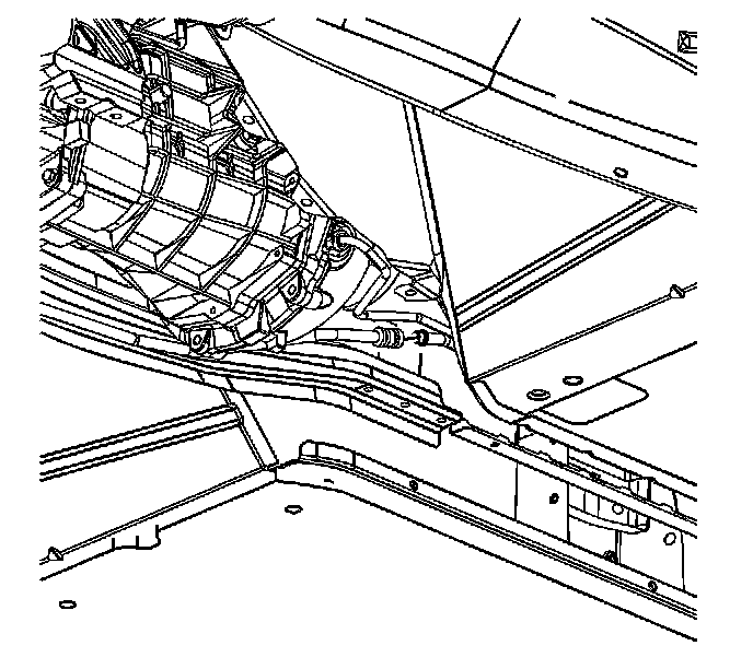 Install the transmission fluid cooler pipe retaining bolts to the driveline support.