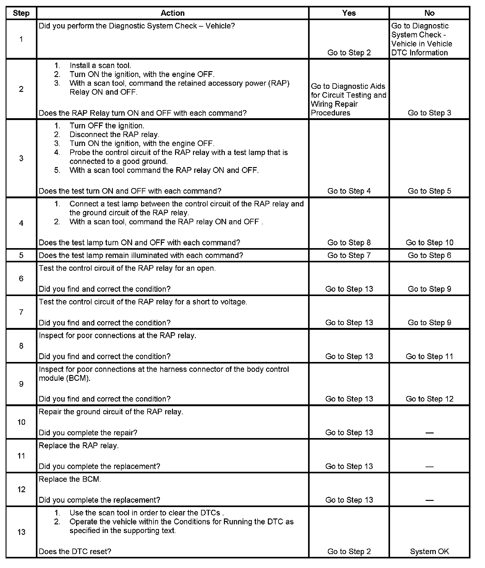 - The BCM detects a short to battery in the RAP relay control circuit when the BCM is trying to de-energize the RAP relay.