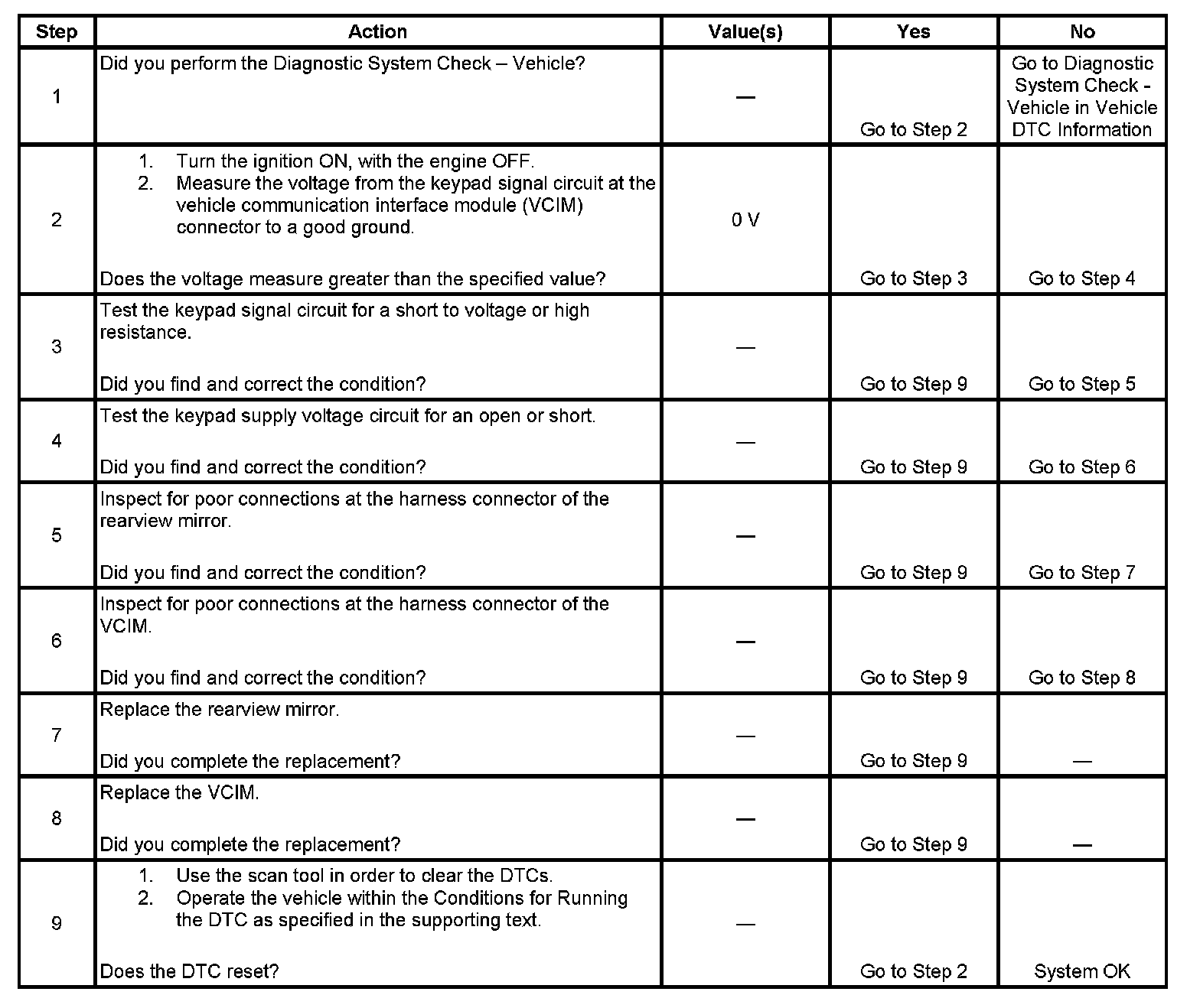 2. This step tests the at rest state of the keypad signal circuit.