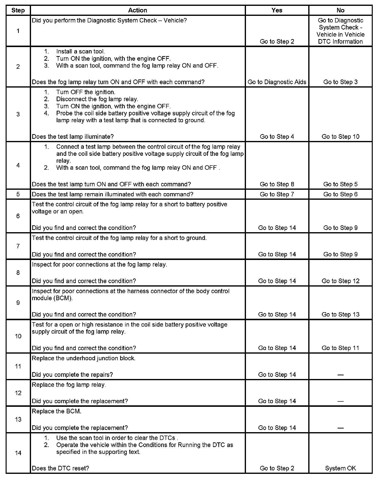 - The BCM detects a short to ground or open in the fog lamp relay coil control circuit when the BCM is not trying to energize the fog lamp relay.