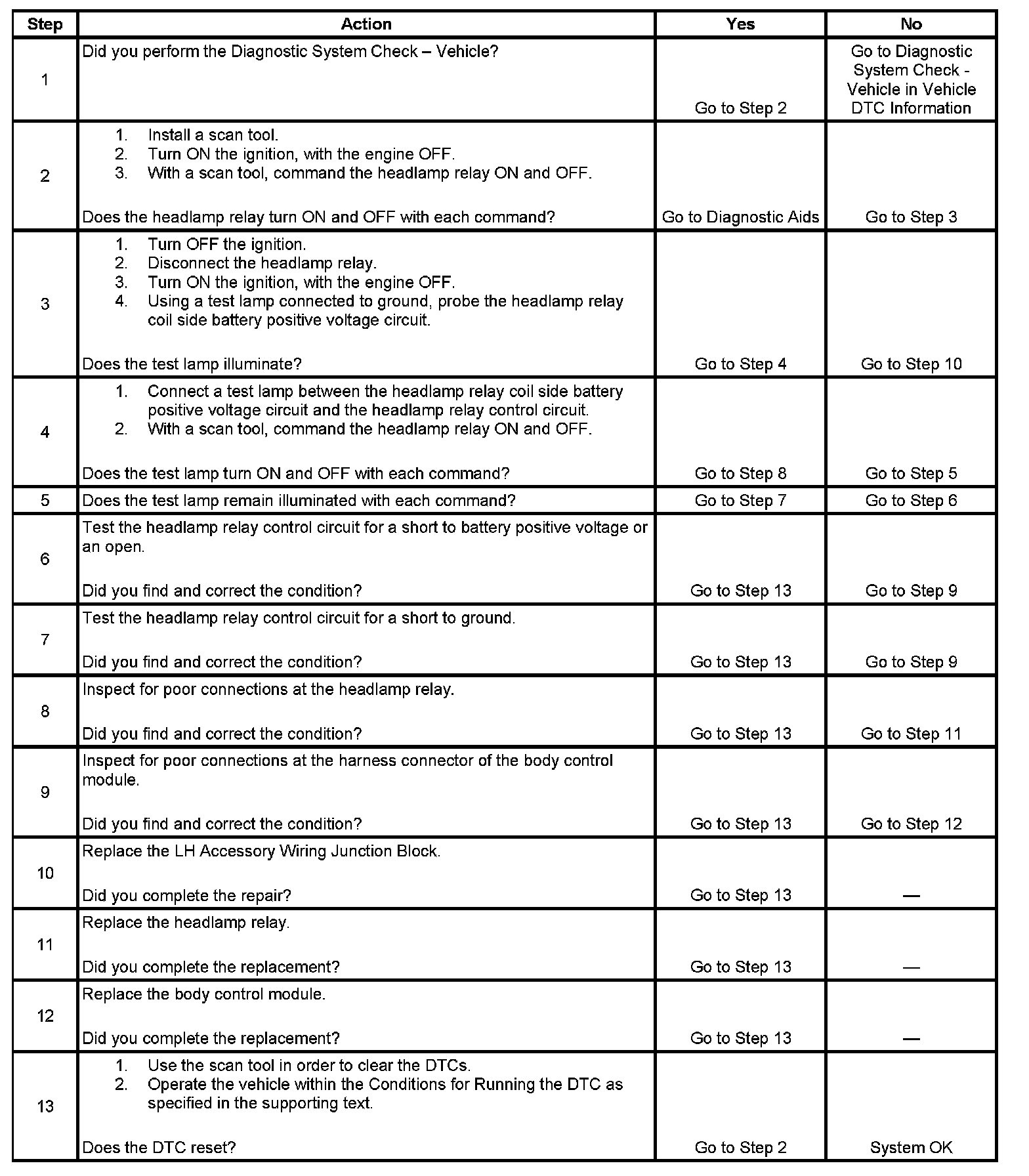 - The BCM detects a short to ground or open in the headlamp relay coil control circuit when the BCM is not trying to energize the headlamp relay.