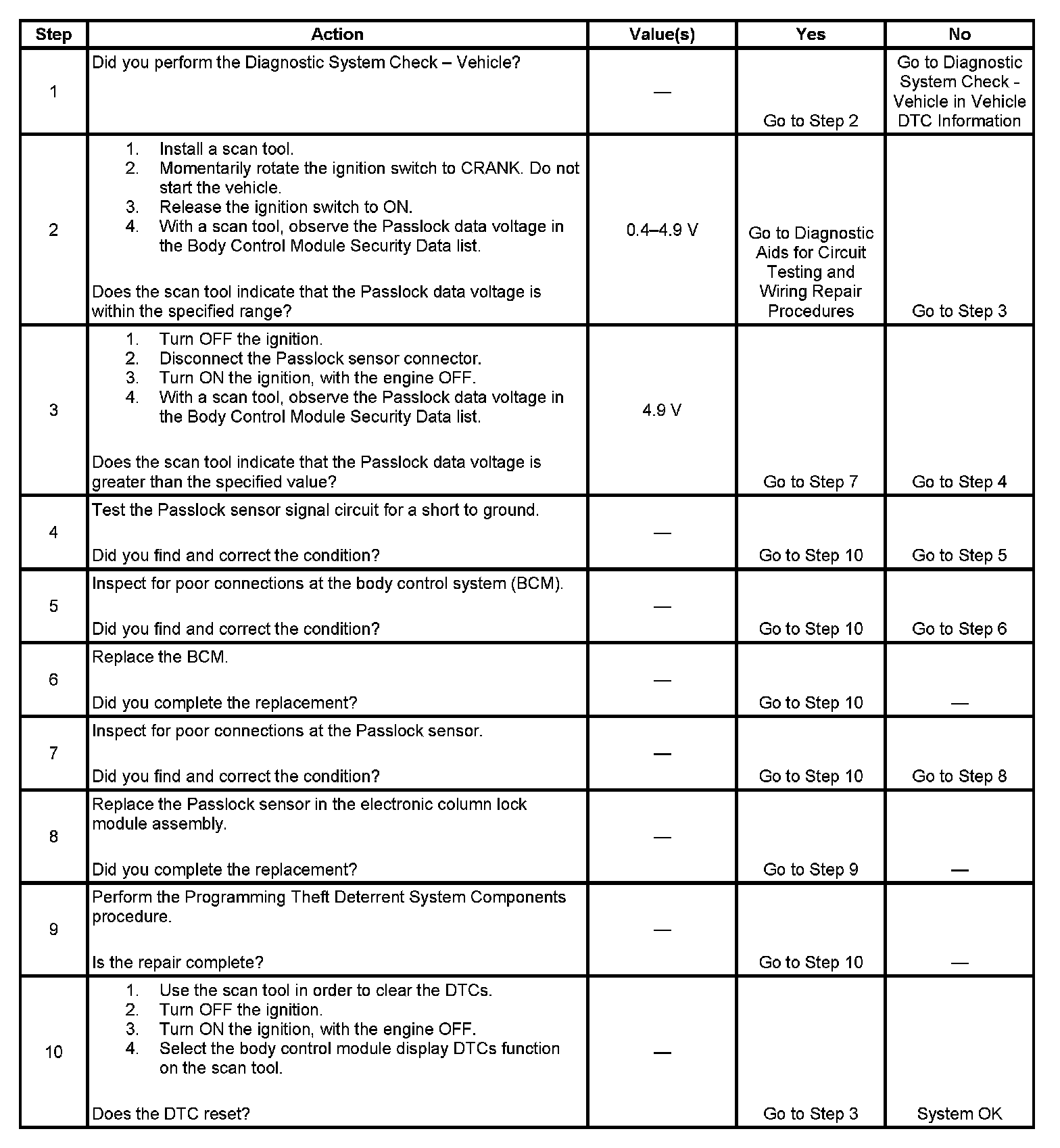 - Inspect the Passlock sensor harness for an intermittent or a short to ground.