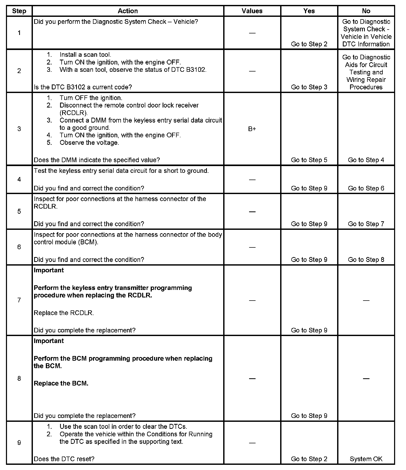 DTC B3102 Keyless Entry Data Circuit Shorted to Ground