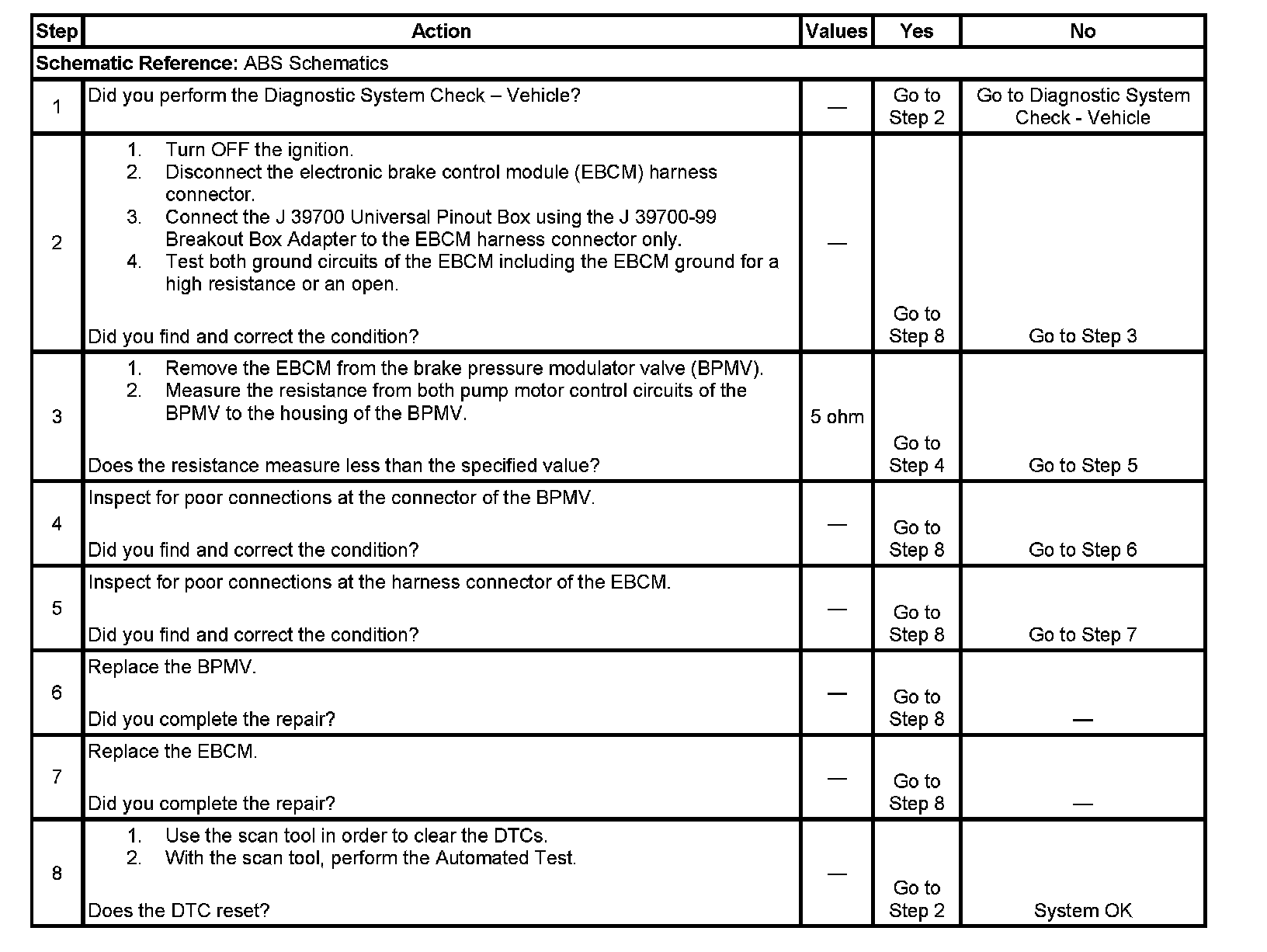 3. Tests the pump motor circuits of the BPMV for a short to the housing of the BPMV.