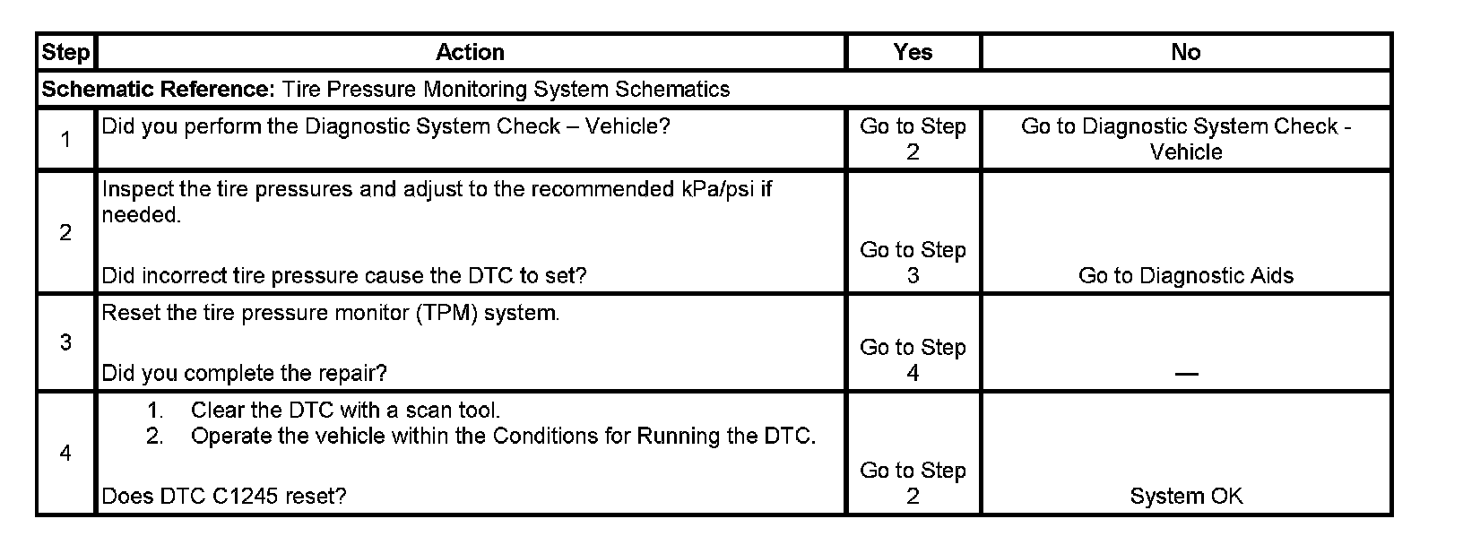 ^ A history DTC will clear after 100 consecutive malfunction free ignition cycles after the TPM system has been reset.
