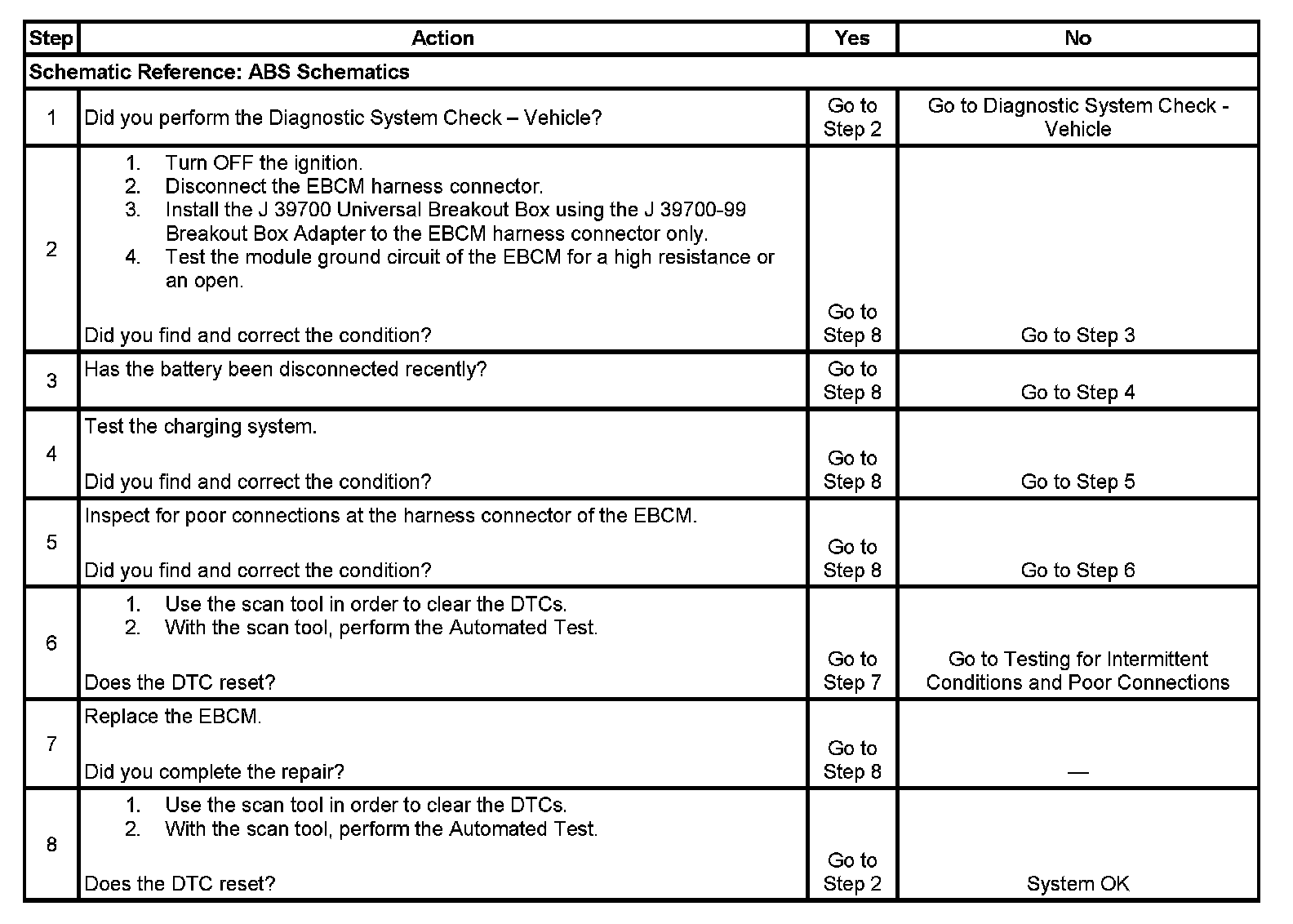 ^ The condition for the DTC is no longer present and the DTC is cleared with a scan tool.