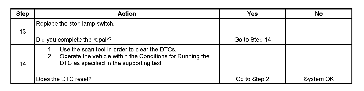 ^ The condition for the DTC is no longer present and the DTC is cleared with a scan tool.