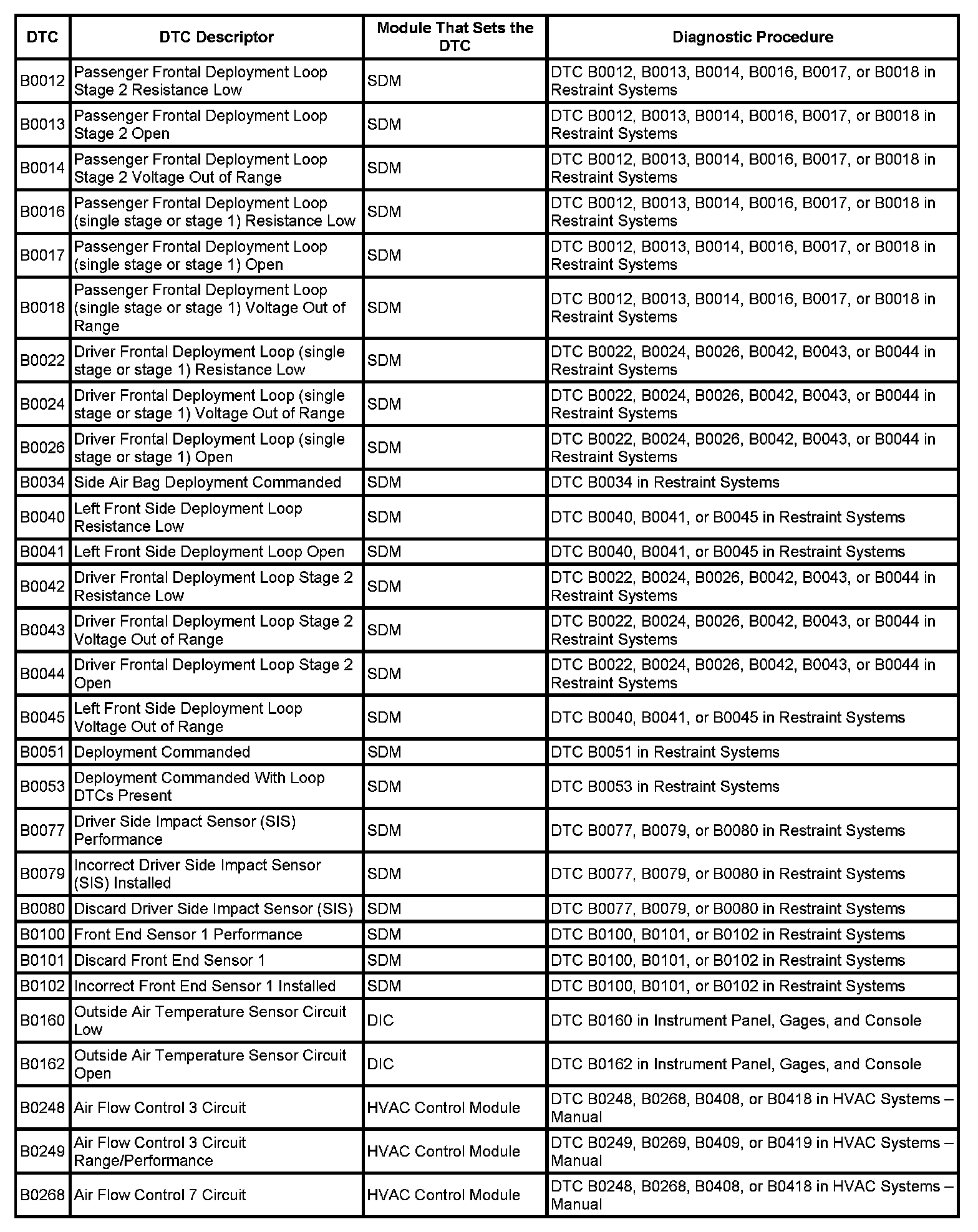DTC's B0012 - B0268: