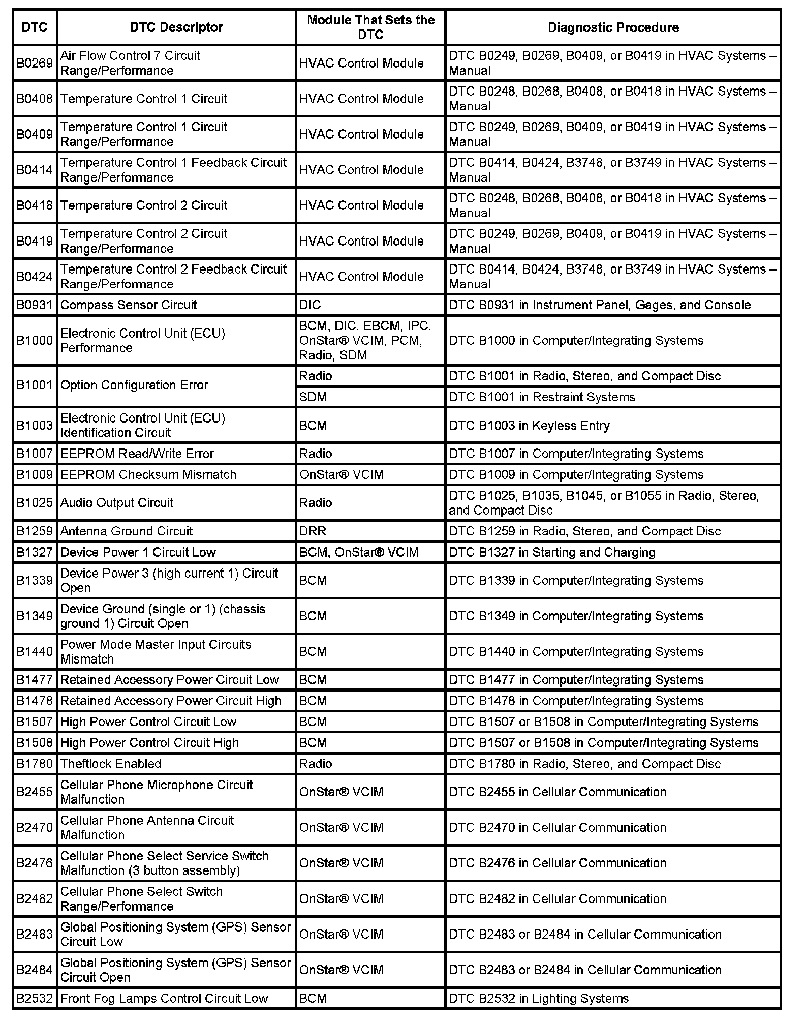 DTC's B0269 - B2532: